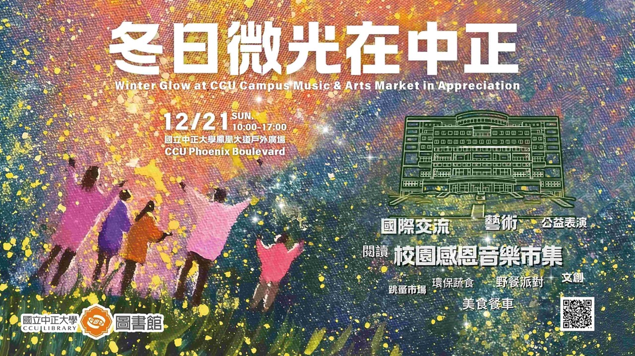 歲末時節,溫柔冬光灑落校園,為感謝企業、校友、師生與社區過去一年的支持與參與,並營造充滿藝術與人文氣息的節慶氛圍,特舉辦【冬日微光在中正】戶外音樂市集活動。